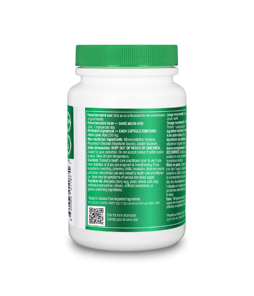 MEDICINAL INGREDIENT - EACH CAPSULE CONTAINS: Alpha Lipoic Acid 250 mg