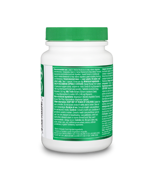 MEDICAL INGREDIENTS: Sweet Fennel 10:1 Extract (Foeniculum vulgare subsp. vulgare var. dulce, seed) 40 mg (Equivalent to 400 mg dried Sweet Fennel seed powder), Turmeric (Curcuma longa, rhizome) 350 mg, Milk Thistle Extract (Silybum marianum, seed) 175 mg (Standardized to contain 80% (140 mg) Silymarin).