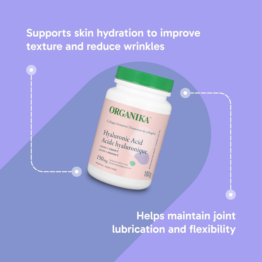 Hyaluronic acid is like your body's natural moisture magnet, found mostly in your skin, joints and connective tissues. Itís key to keeping everything hydrated and feeling good. But as we get older, our supply naturally drops, and that's when you start noticing dry skin and slower repair. Packed with hyaluronic acid that can hold up to 1,000 times its weight in water, our Hyaluronic Acid Powder helps replenish hydration deep within the skin, smoothing out texture and wrinkles. Plus, with vitamin C added to boost collagen production, this dynamic duo supports healthy bones, joints and that radiant, youthful glow. Vegan-friendly and thoughtfully formulated, it's a simple, effective way to give your body welcome hydration.