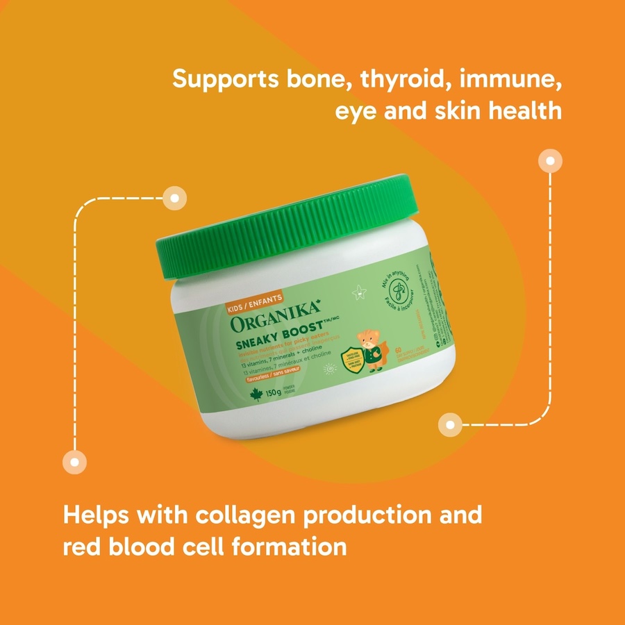 That’s where this flavourless powder steps in. Kids Sneaky Boost is packed with essential vitamins and minerals like choline that help support everything from bone growth and immune defence to energy metabolism and vision. With nutrients that help form red blood cells, boost collagen production and support the thyroid, this powder covers a lot of ground for something so fuss-free.