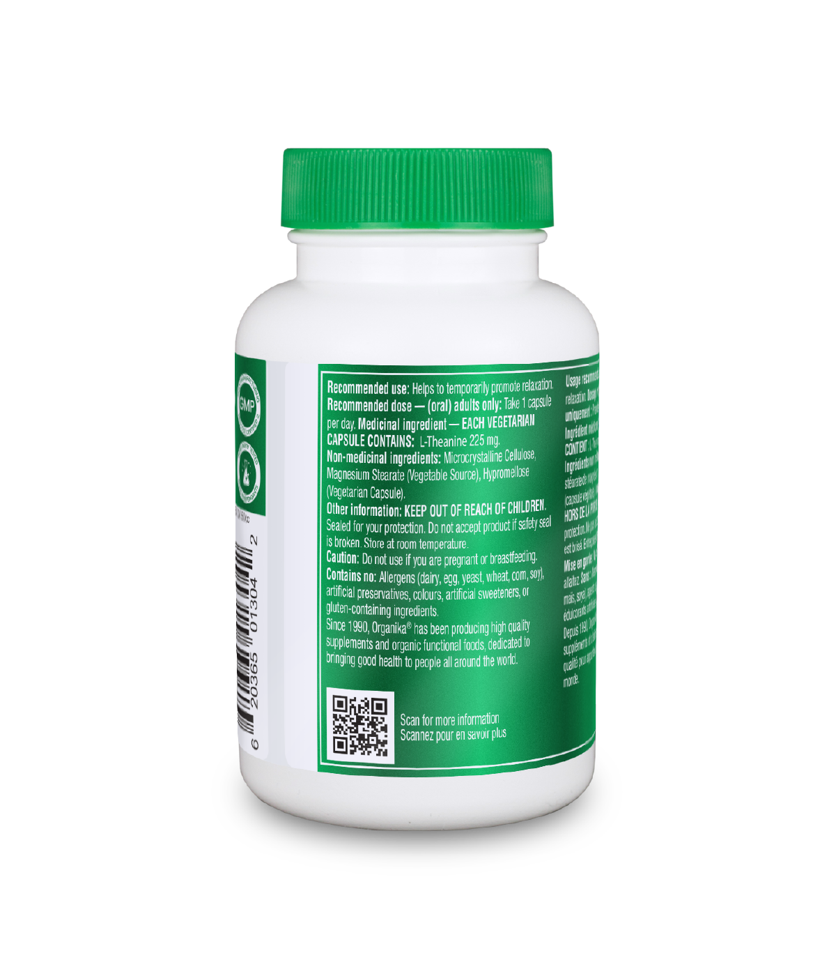 MEDICINAL INGREDIENT - EACH VEGETARIAN CAPSULE CONTAINS: L-Theanine 225 mg.