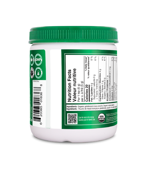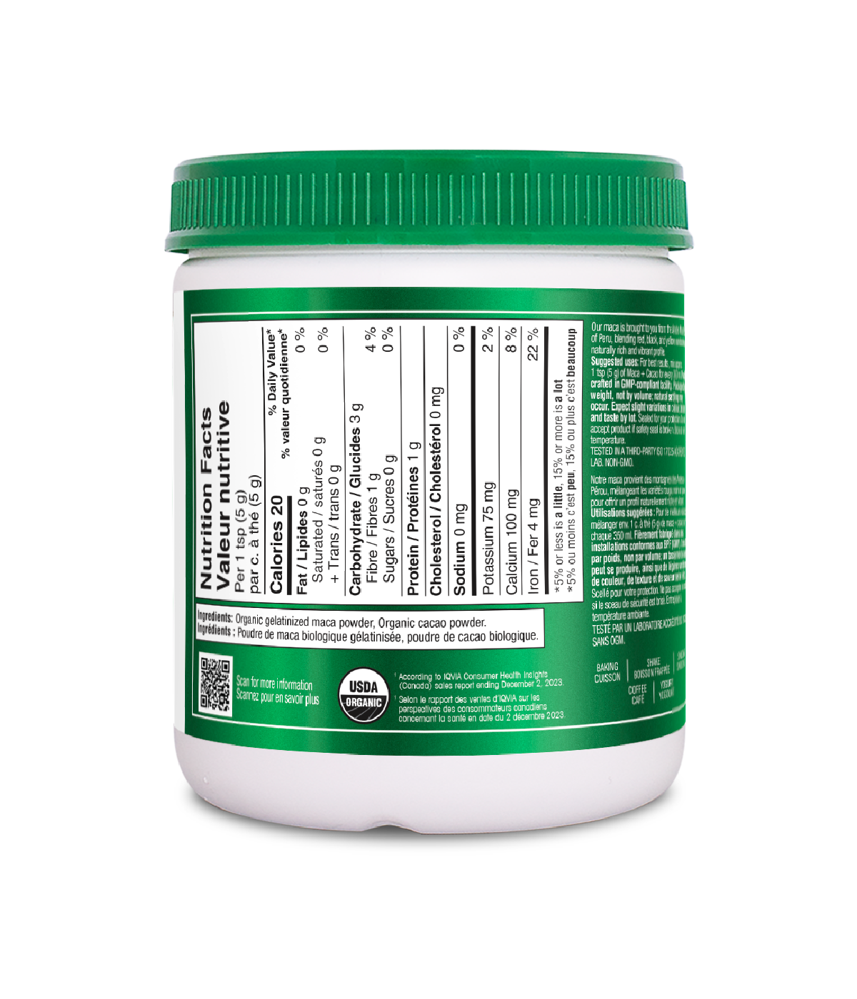A rich, energizing blend of organic maca and cacao is naturally sweet and perfect for your daily vitality ritual