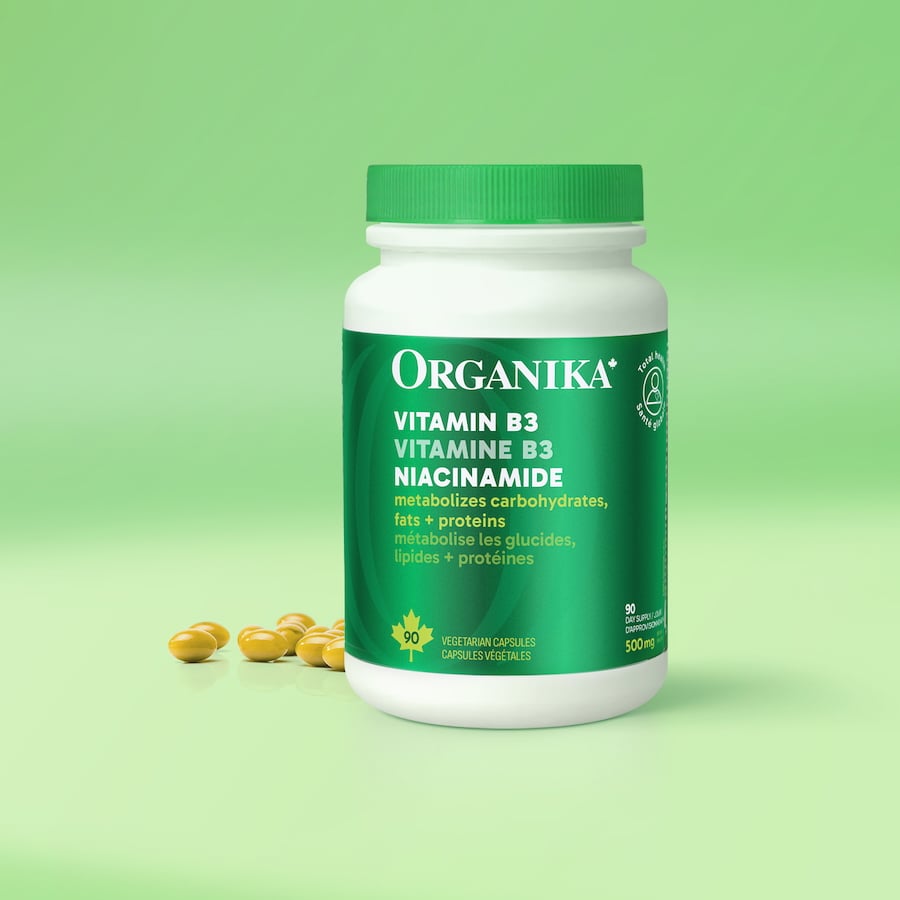 Niacinamide, also known as vitamin B3, plays a vital role in your body’s natural energy metabolism. This essential nutrient helps convert carbohydrates, fats, and proteins you eat into energy—making sure your body has the necessary fuel to run smoothly. Organika’s Vitamin B3 Niacinamide offers easy support for your foundational health.